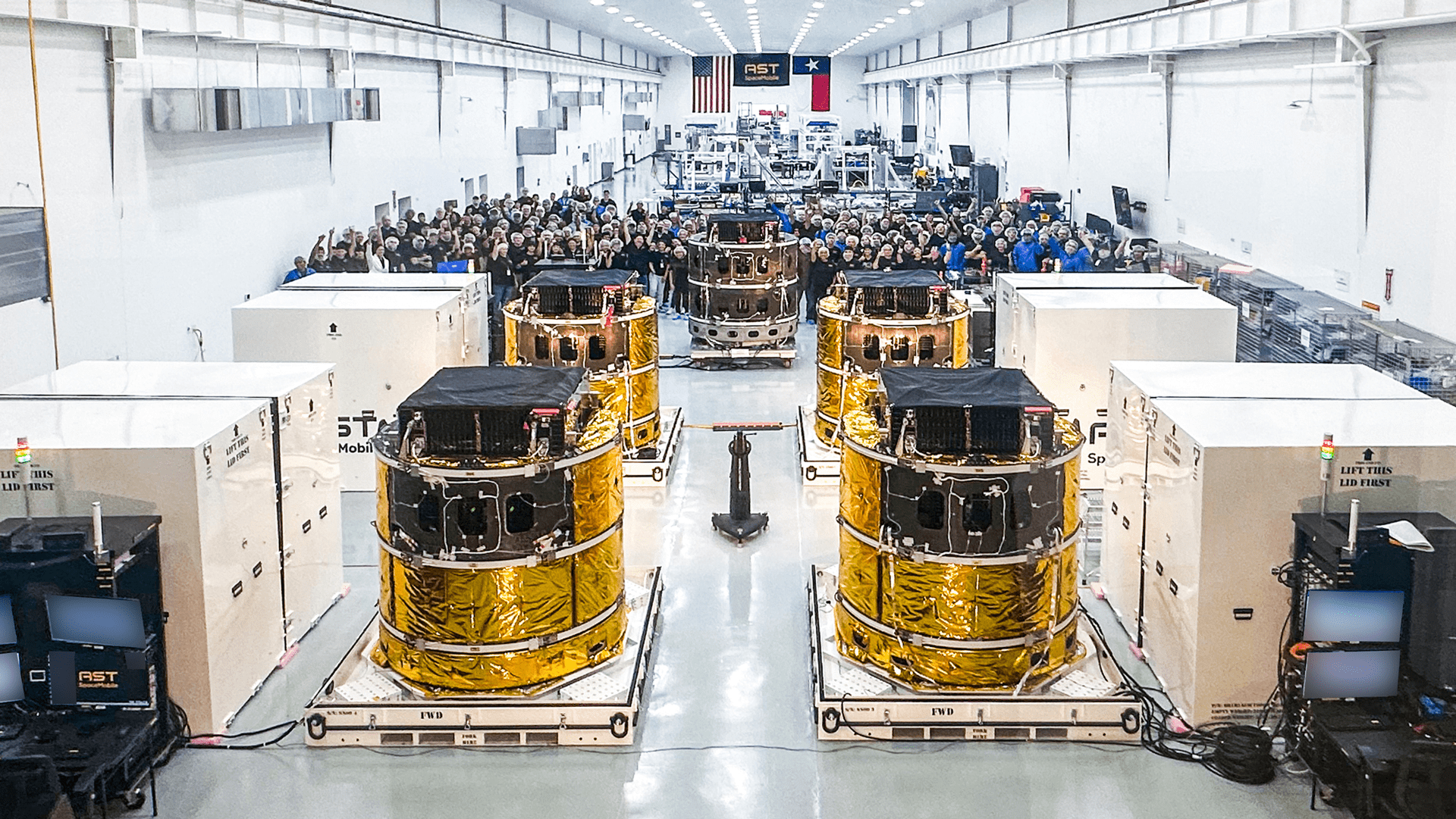 The satellites were built with 95% vertical integration across AST SpaceMobile’s assembly, integration, and testing facilities in Midland, Texas.